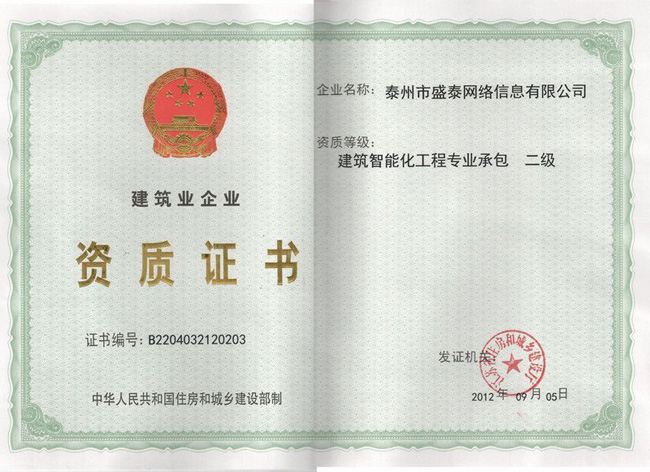 熱烈慶祝泰州市盛泰網(wǎng)絡(luò)信息有限公司建筑智能化專業(yè)承包資質(zhì)(二級)申請并獲得通過。這標(biāo)志著我公司未來將在建筑智能化領(lǐng)域邁開嶄新的一步!同時也預(yù)祝公司在未來有更大更快更好的發(fā)展!...